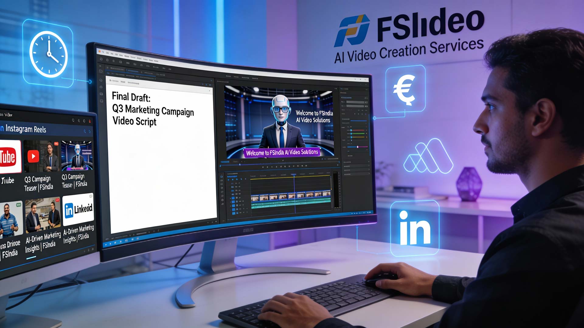 Transform your ideas into professional videos instantly with FSIndia’s AI Video Creation Services. Leverage cutting-edge AI technology to produce high-quality corporate videos, marketing content, training modules, and social media reels without traditional production costs or timelines.